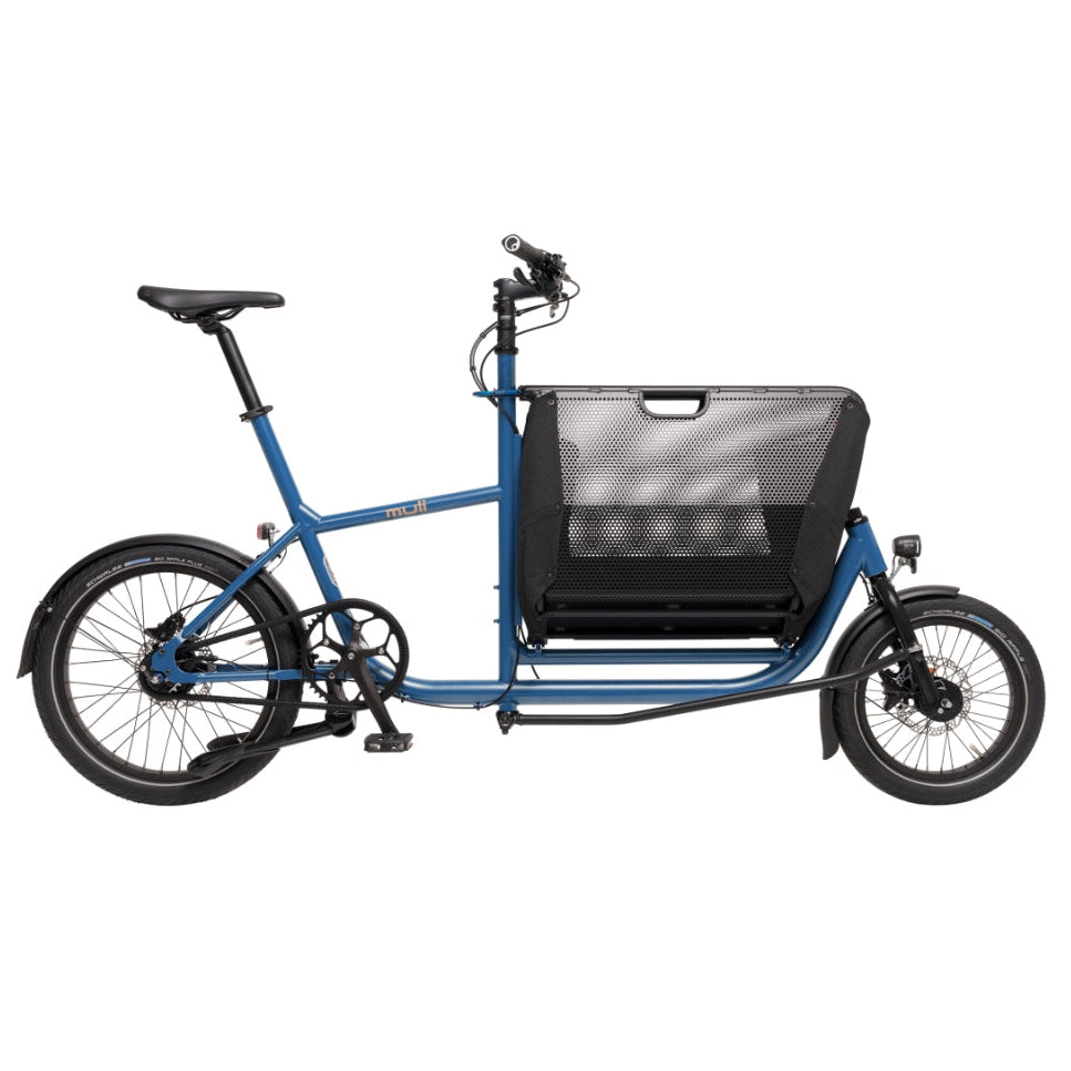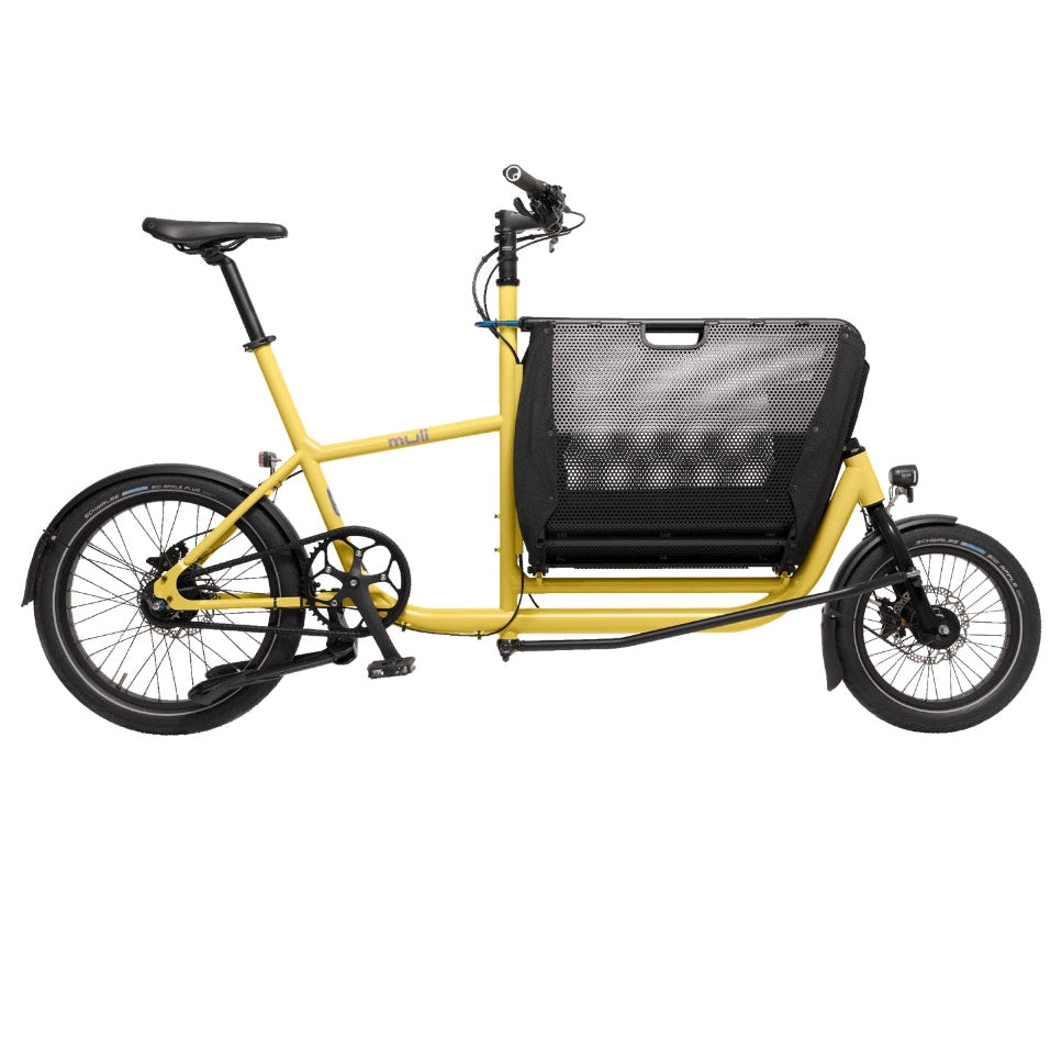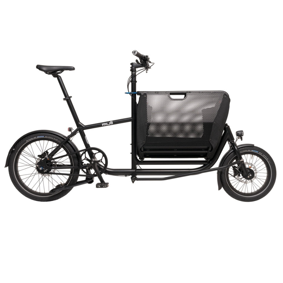 The muli Muskel is the first, lightest and most sustainable muli we have ever built. Compact, with a folding basket, it combines city bike and cargo bike in one! You can effortlessly transport shopping, kids, dogs, boxes, parcels or whatever you want. It fits in tight bike spaces and on the suburban train. Our Original is ideal for your everyday life in the neighborhood, without any long distances.