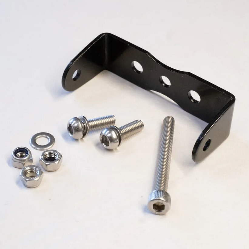This powder coated steel rack adaptor mounts to the center fork crown hole on your steel or aluminum fork (or carbon fork if the manufacturer allows it) and gives you two fork crown mounting points for our rack struts. The adaptor is drilled for an M5 bolt for the fork crown, and includes an M5x45mm bolt (you may need a longer or shorter bolt depending on the thickness of your fork crown) and M5x16mm bolts for attaching our rack struts to the adaptor, as well as nylock nuts and washers.